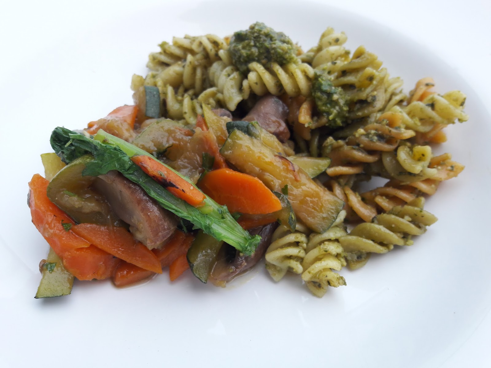 Fusilli em Pesto de Nozes com Ragu de Hortícolas