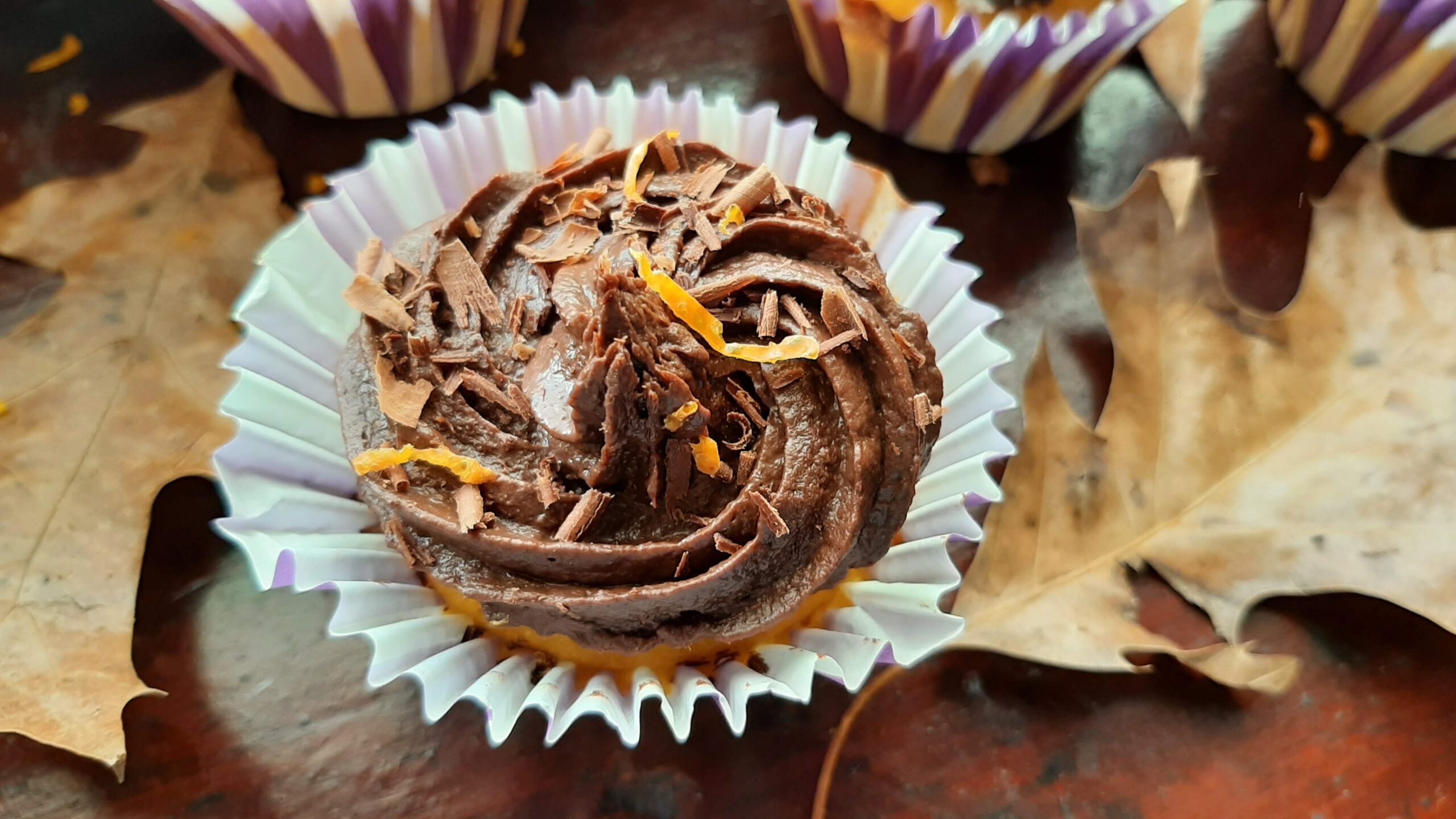 Cupcakes de Cenoura e Laranja, com cobertura de banana e chocolate
