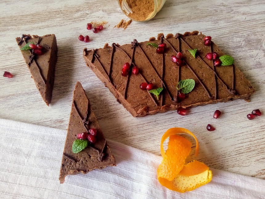 Tarte crua de chocolate e caju com sabor suave a laranja